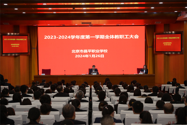 1月26日上午,北京市昌平职业学校2023-2024学年第一学期工作总结会在学校新一代信息技术人才培养基地举行,全体教职工参加大会。