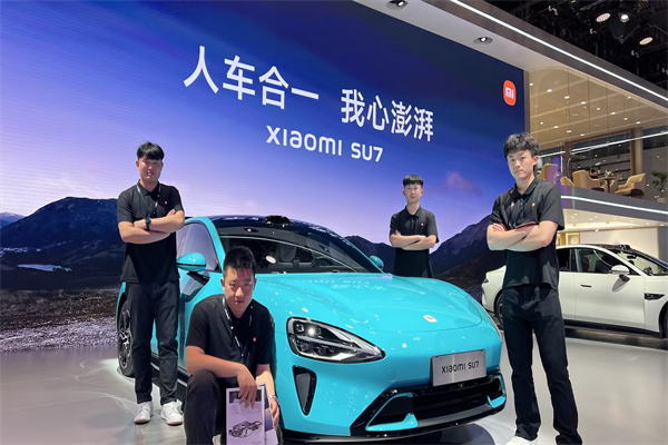 李果多同学就是此次实习工作中的一员。他在小米4s店做服务接待专员,因表现突出,被4s店推荐到总部,与其他区域高管、店面经理一同参加车展培训。两天的集训中,他的成绩高于其他参训者50分,在团队中遥遥领先,最终被推荐全程参与本次国际车展服务。参展期间,他凭借热情周到的服务、耐心细致的讲解,完成小米汽车展台首单销售。经理和同事们对他竖起大拇指:这个实习生好样的!