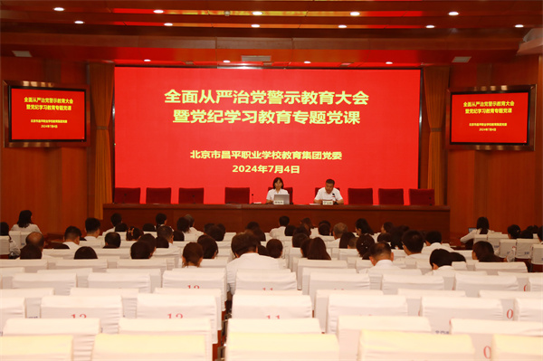 为深入学习贯彻习近平总书记关于全面加强党的纪律建设的重要论述,扎实开展党纪学习教育,纵深推进学校全面从严治党工作。7月4日下午,北京市昌平职业学校教育集团党委组织召开全面从严治党警示教育大会暨党纪学习教育专题党课。学校教育集团党委书记郑艳秋出席会议并讲话,学校教育集团党委副书记、校长丁云鹏主持会议,全体党员、干部参加。