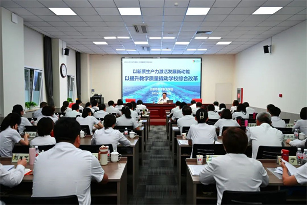 总校长指出,教学质量是学校生存与发展的生命线,课堂教学是教学质量的关键,要以课堂革命为小切口,撬动学校综合改革,并从理念、标准、评价、策略等方面阐述了推动课堂革命的思路与具体举措。总校长强调,全体干部必须凝心聚力,冲锋在前,在提升质量、优化服务、凝聚人心、化解风险、破解难题上下功夫,扎根大地办学、面向未来育人,切实将专业建在区域产业上,全面加强产教融合、校企合作,加快以新质生产力打造职业教育的经营新模式,实现学校更高质量、更高水平的新发展!