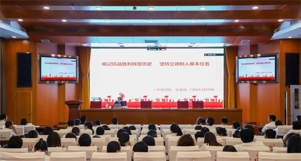 今年是中国人民抗日战争暨世界反法西斯战争胜利80周年,为持续提升教师思想政治素质和师德修养水平,激励全体教师不忘立德树人初心,担当为党育人、为国育才使命,进一步弘扬以爱国主义为核心的民族精神, 9月30日下午,学校特邀中央团校副教授张春丽为全体教师作了题为“铭记抗战胜利辉煌历史 坚持立德树人根本任务”的专题讲座。讲座由教师发展中心主任贾光宏主持。