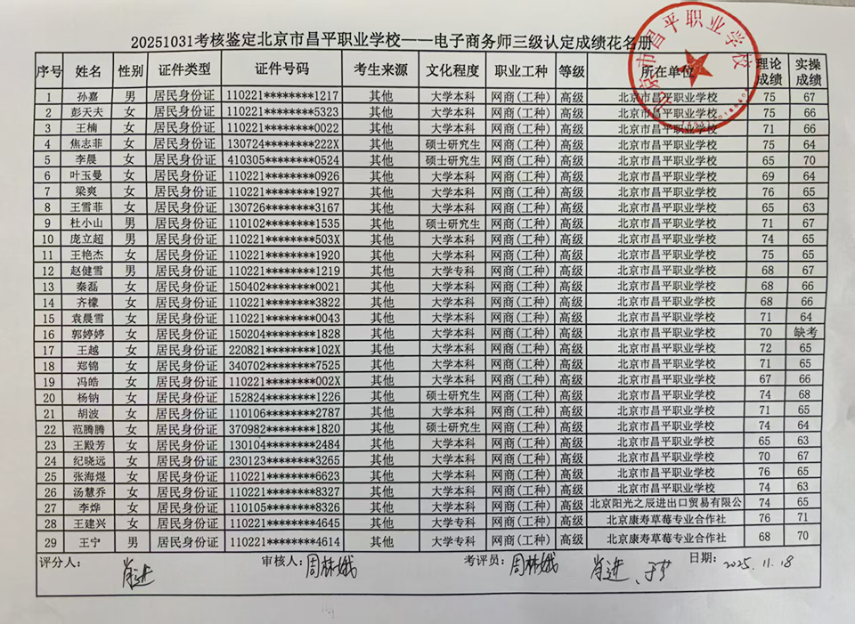 如对本次成绩有异议,请联系北京市昌平职业学校职业技能等级认定工作组(樊妍:13716792717)。