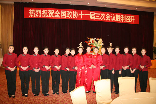 “两会”前,北京会议中心再次选拔60名学生担任两会服务。2009年3月1日上午,学生们身着特为两会服务员制作的红色礼服,正式成为全国“两会”引导员和服务人员,在全国性的大会实际训练在校学习的内容。